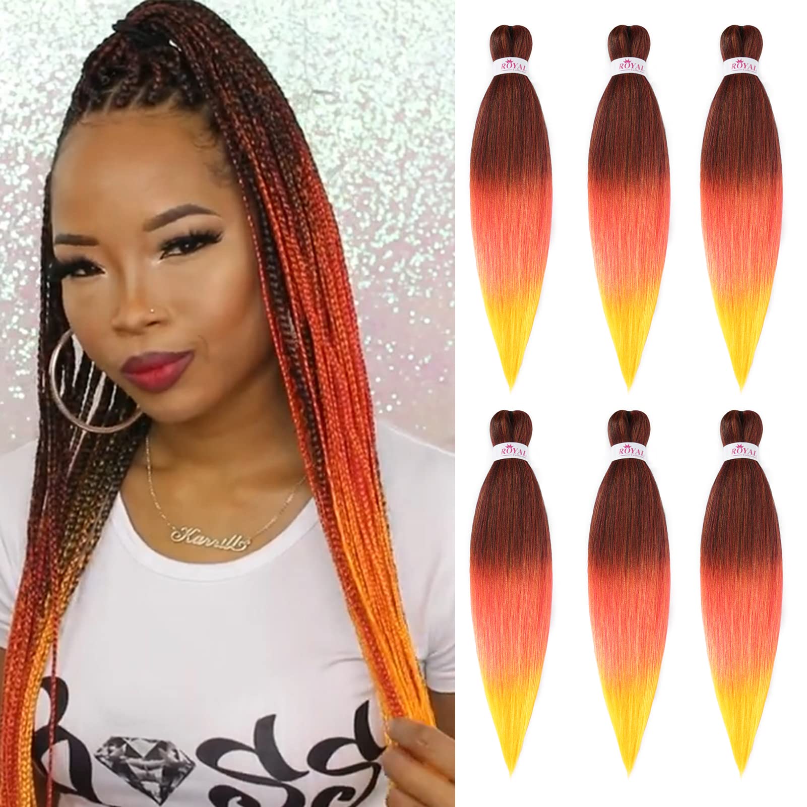 Amazon Com Royal Collection Orange Yellow Braiding Hair 30 Inches Long Pre Stretched Braiding Hair Yaki Texture Hot Water Setting Colorful Extensions For Black Women 30 Inch T1b Red Orange Beauty Personal Care